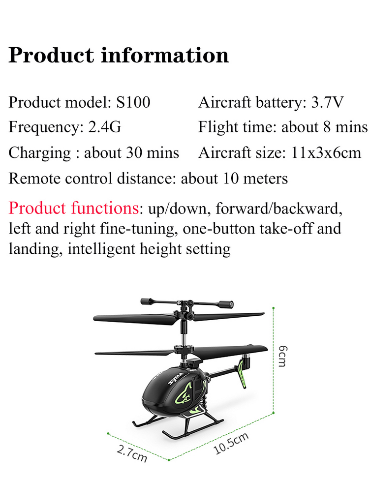 New RC Helicopters SYMA S100 Original Mini Intelligent Fixed Height Helicopter Children's Toy Unmanned Aerial Vehicle toy